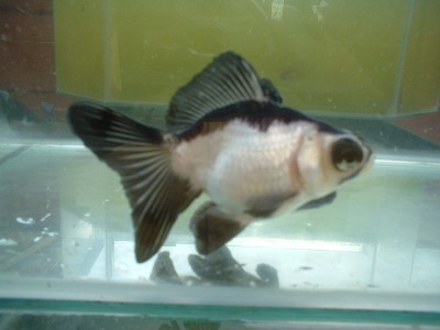 An amazing Black and white Demekin. This is one of the newer colour varieties, it can be quite strikingly attractive but is not entirely fixed yet so that the colour may not remain stable as the fish ages.